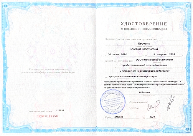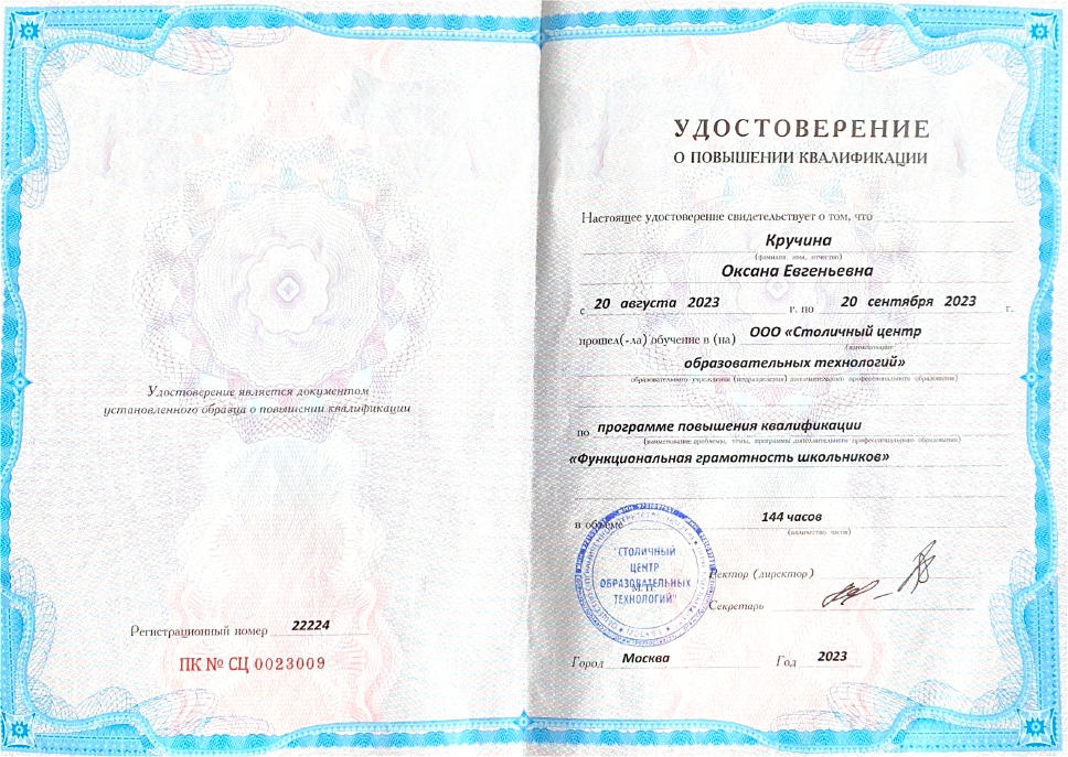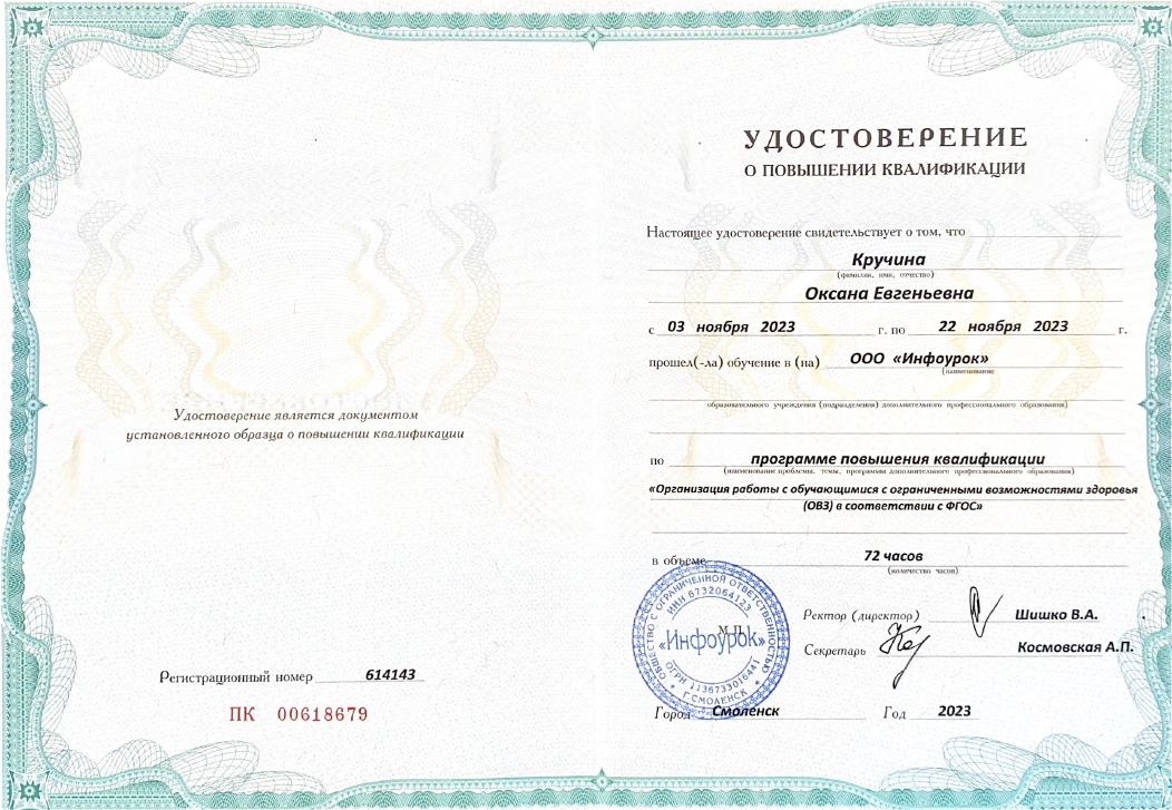 - Фамилия, имя, отчество: Кручина Оксана Евгеньевна