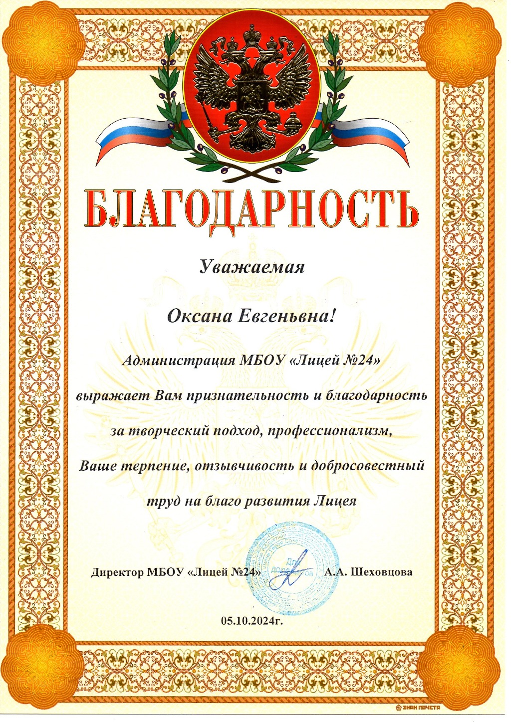 - Место работы: Муниципальное бюджетное образовательное учреждение «Лицей №24 имени Героя Советского Союза А. В. Корявина»